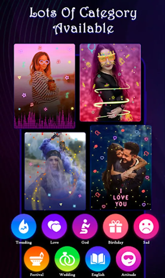 💝You can use this photo video editing application to quickly create cool mv for free and make Lyrical Video Status, Festival Video Status, Anniversary Photo Status, Happy birthday Video Status, Magical Video Status, Master Video Status, etc. to share with friends.