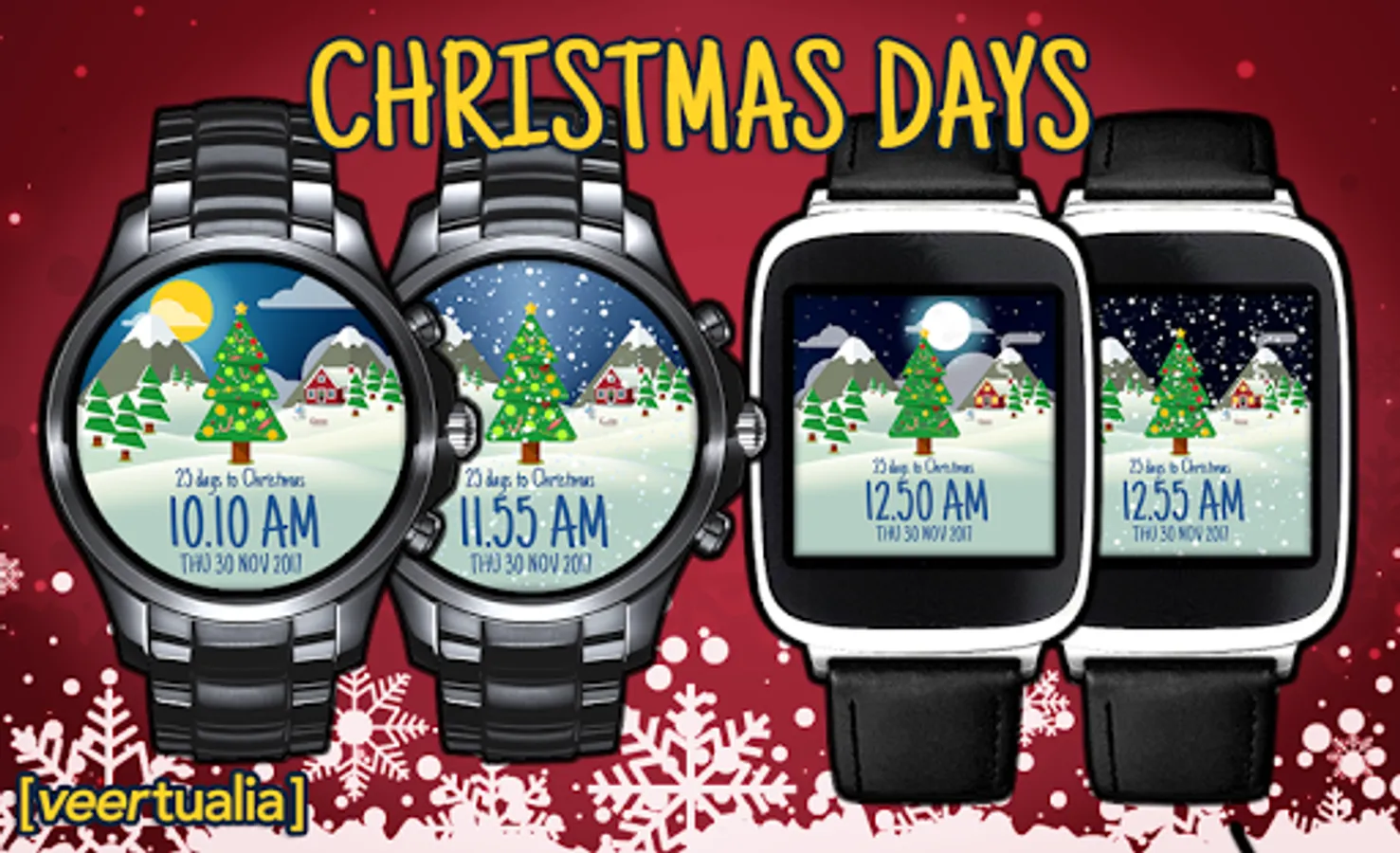 Christmas days is a cool animated watch face featuring a relaxing Winter landscape, inspired by material design style.