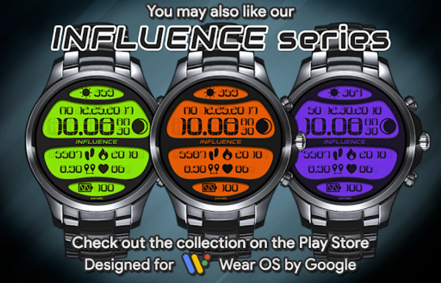 • THIS WATCH FACE IS FOR ANDROID WEAR DEVICES ONLY, NOT FOR SAMSUNG GEAR SMART WATCHES RUNNING TIZEN OS.