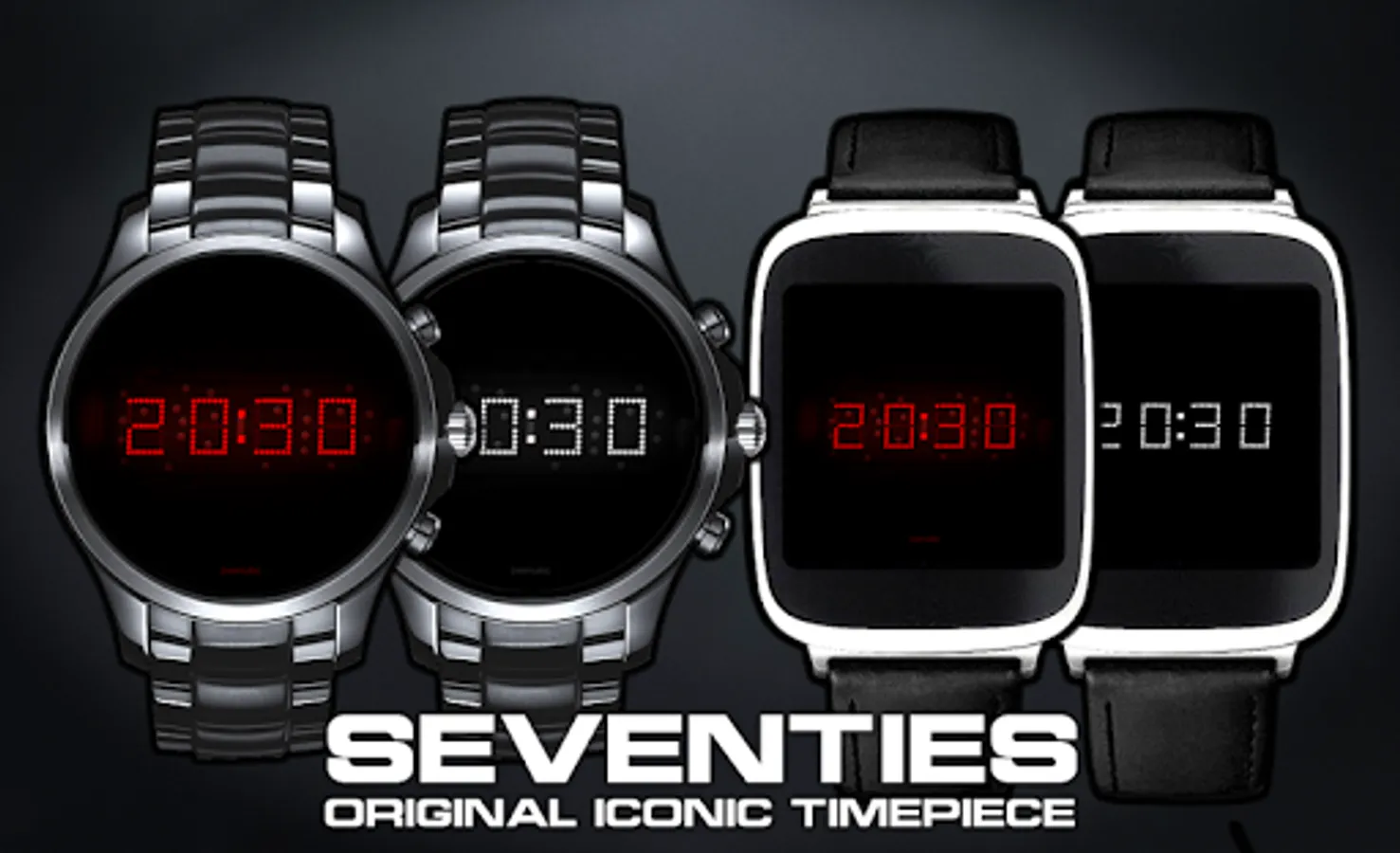 Seventies is the most accurate replica of the first electronic quartz digital led watches of the 1970s.