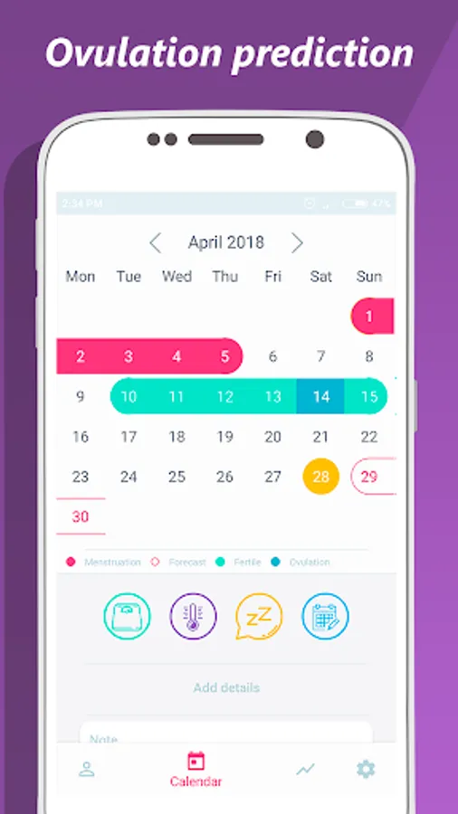 Period Tracker will help you easily track your period, predict the ovulation days and chance of conception. Log your menstruation days in the calendar, schedule menstrual cycle reminders, record symptoms, mood, sexual activity, weight, temperature, notes, etc. The app is very easy to use and is suitable for everyone. Modern design and accurate calculation make the Period Tracker irreplaceable in everyday life.