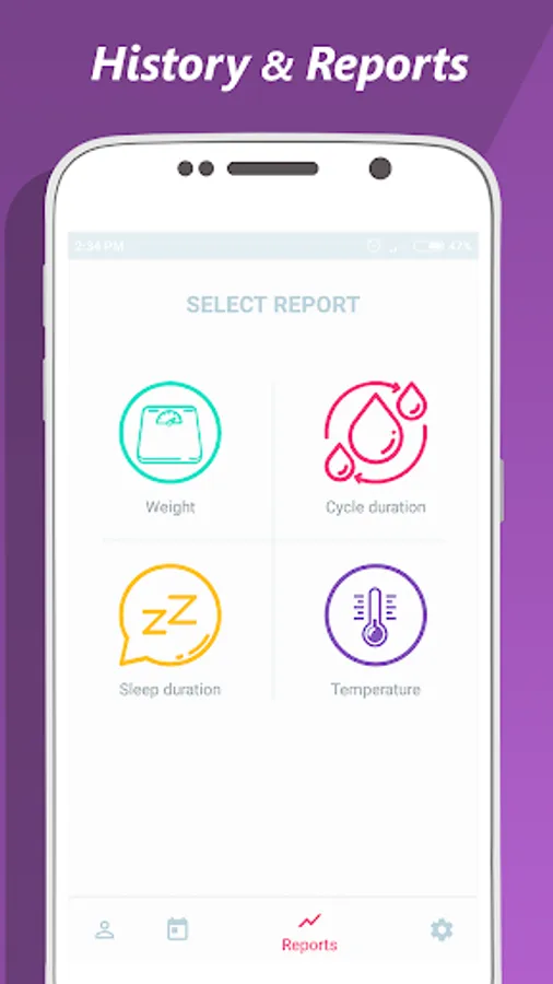 Period Tracker will automatically remind you about beginning of the cycle and ovulation. Also you can get reminders to log weight, temperature or sleep duration. The report graphs helps you to analyze health indicators and periods. Also you can easely protect access to Period Tracker with a password or a fingerprint.