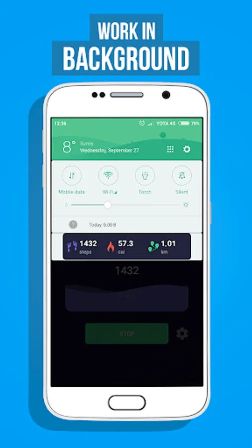 The pedometer uses a built-in sensor to count the steps, so the application almost does not consume battery power.