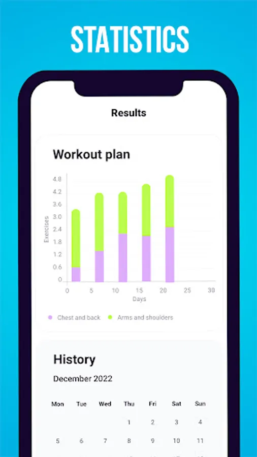 You can easily keep track of your progress in the statistics section, and reminders will help you do not miss training and make you even more disciplined.