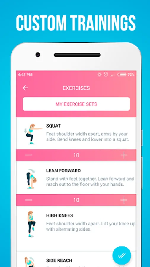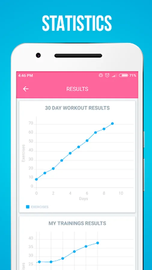 You can easily keep track of your progress in the statistics section, and reminders will help you do not miss training and make you even more disciplined.