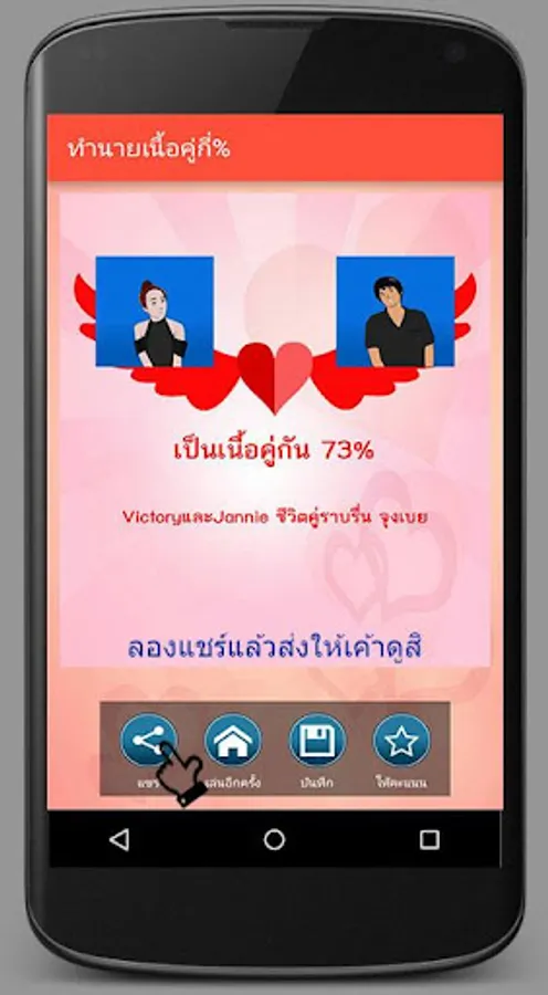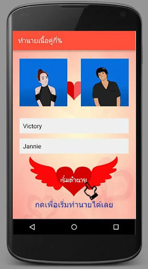 Simply enter your name and insert your name and your sweetheart. Insert with a loved one, then press the "start predicting" the app will predict the percentage of your soulmate with friends.