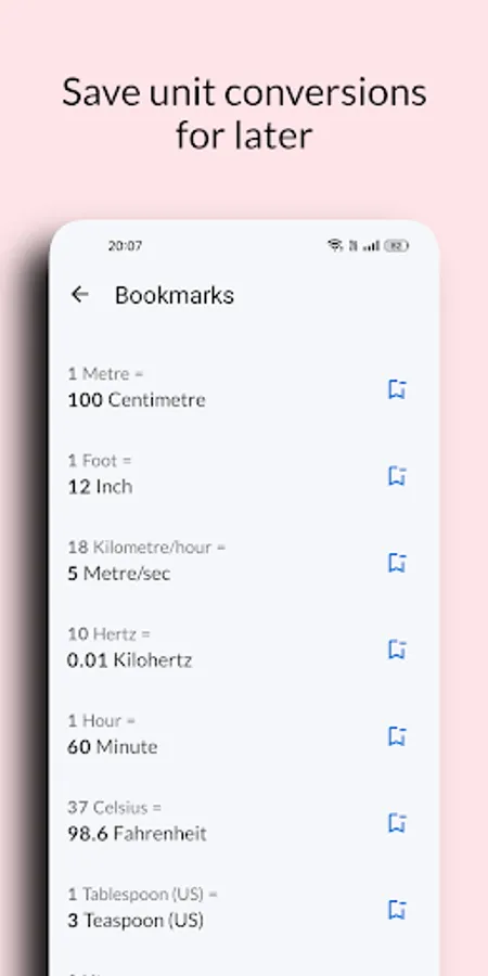 Unit Converter is a simple yet powerful utility tool that enables you to quickly convert units and currencies on the go. This app boasts of more than 20 conversion categories ranging from commonly used categories like length, area and temperature to scientific categories like frequency, energy and pressure. With a tiny download size of less than 2MB, this app won't take up your precious device and network resources. It starts quickly and converts values instantly. What's more? You can even save your time by adding the most frequently used conversions to bookmarks.
