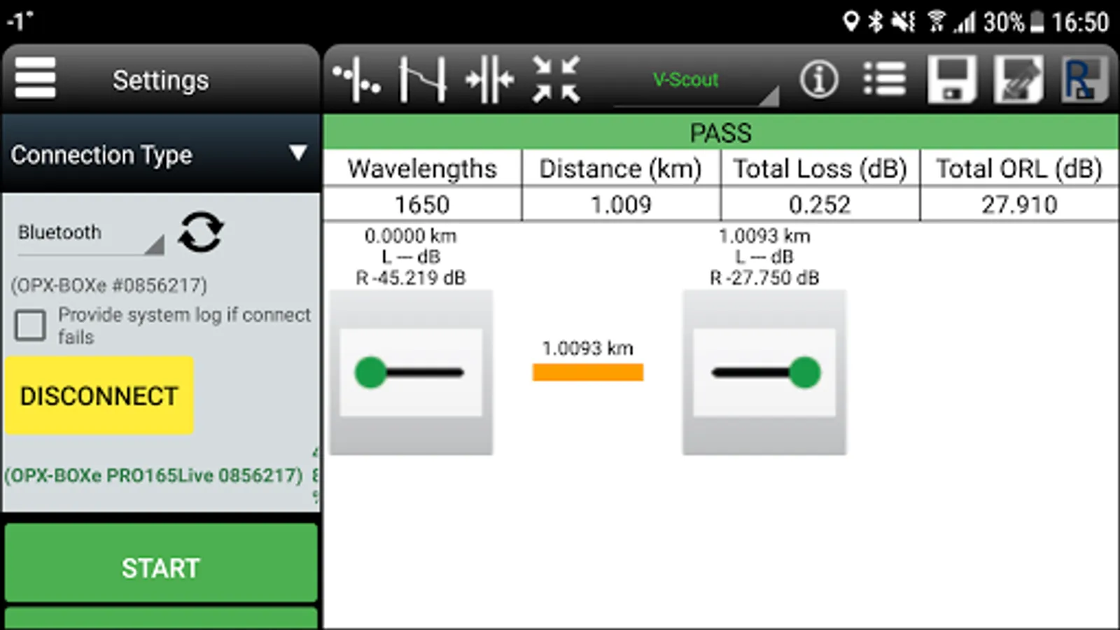 - to OTDRs OPX-BOX, OPX-BOX+, OPX-BOXe via Bluetooth or WiFi, or USB;