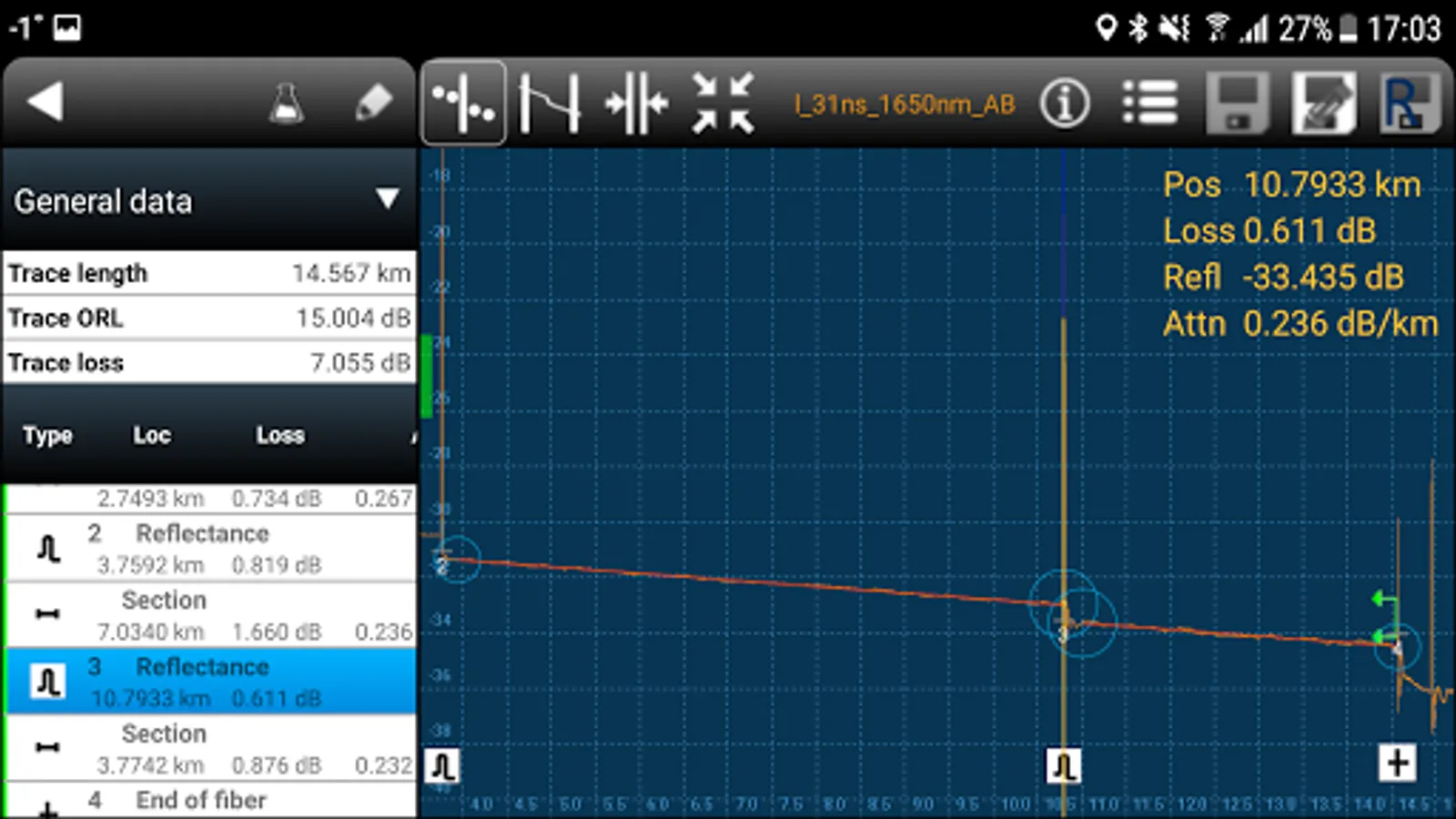 2) use advanced methods of measuring reflectance, optical return loss and fiber attenuation (e. g., 2- or 5- marker analysis), automated mode or manually;