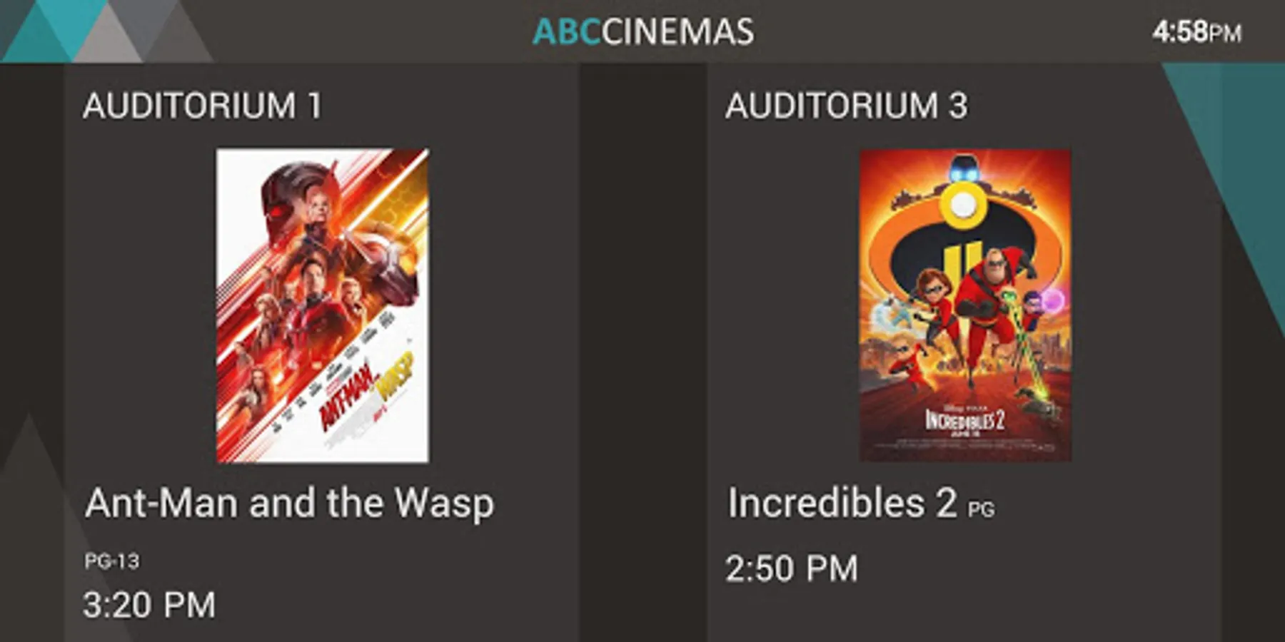 — Display what you need, the way you need it. The Digital Signage App lets you customize the color scheme, upload your logo, and turn your display into a door sign, a poster box, or a foyer showtime screen (along with some useful but less exciting settings like orientation).