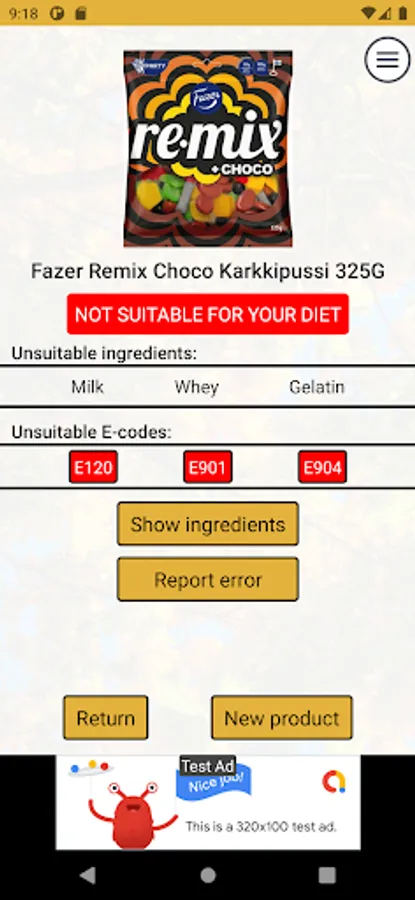 Scan food product bar codes to find out if they suit your diet.