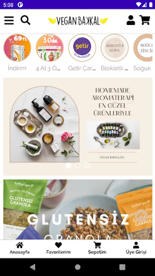 Instantly with the Veganbakkal.com.tr mobile e-commerce application;