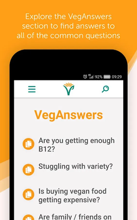 * Boost your expertise with the VegAnswers section - VegAnswers are little nuggets of information that will broaden your knowledge on vegan issues.