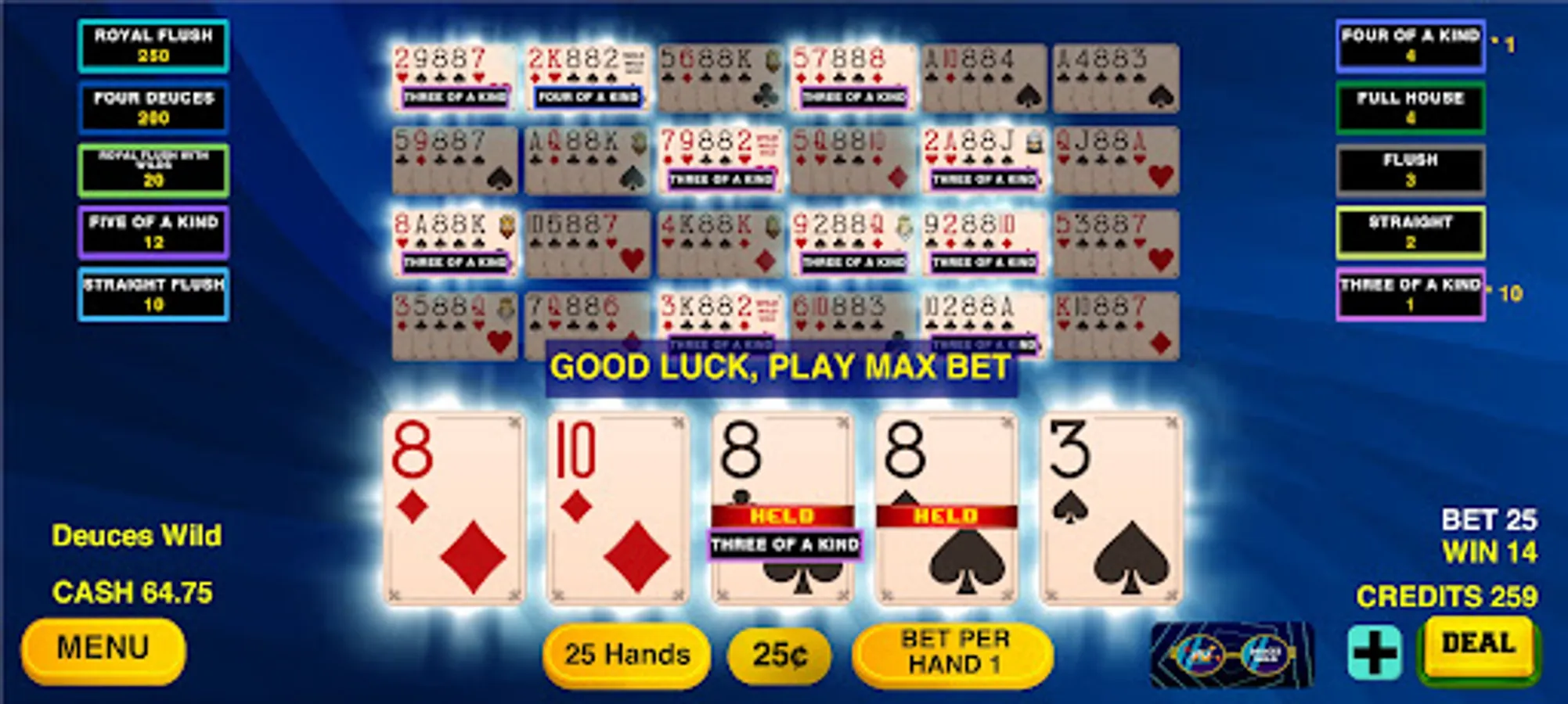 Deuces Wild Video Poker - Multi hand game features all the Deuces Wild Poker games you can experience in Las Vegas.