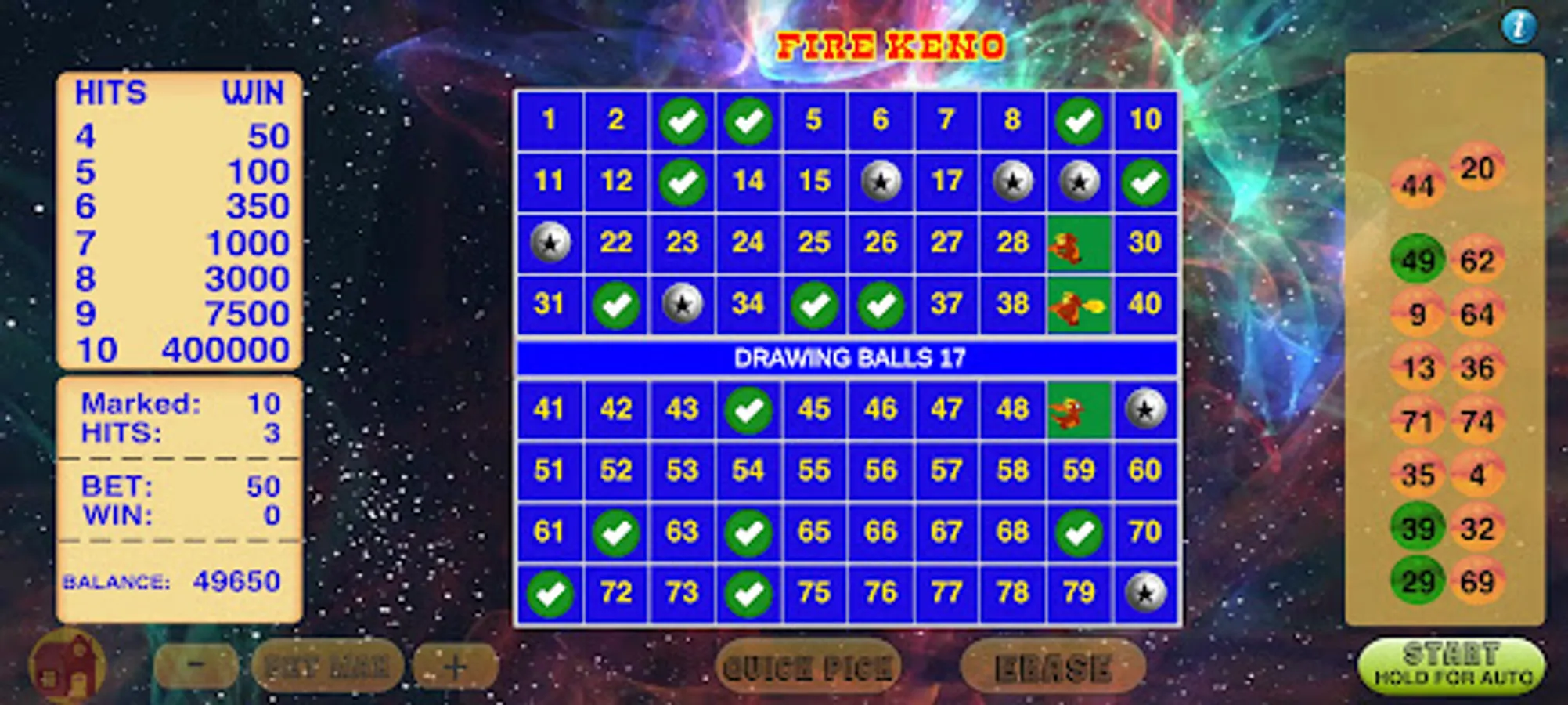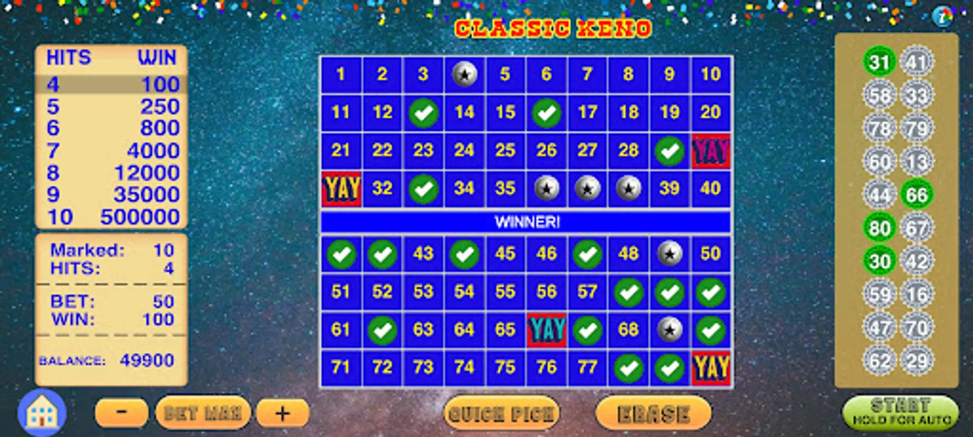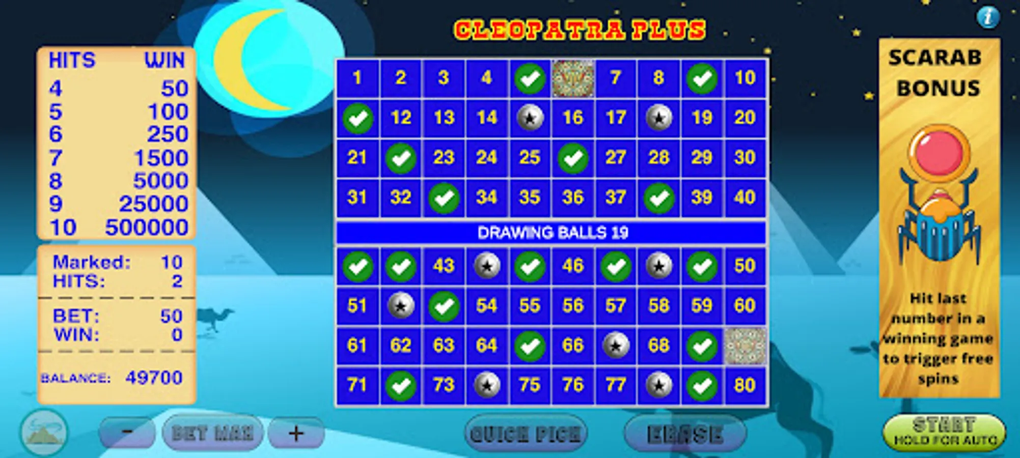 Starting from the classic keno to cleopatra keno plus bonus, Keno Vegas has a lot of keno games included in the game.