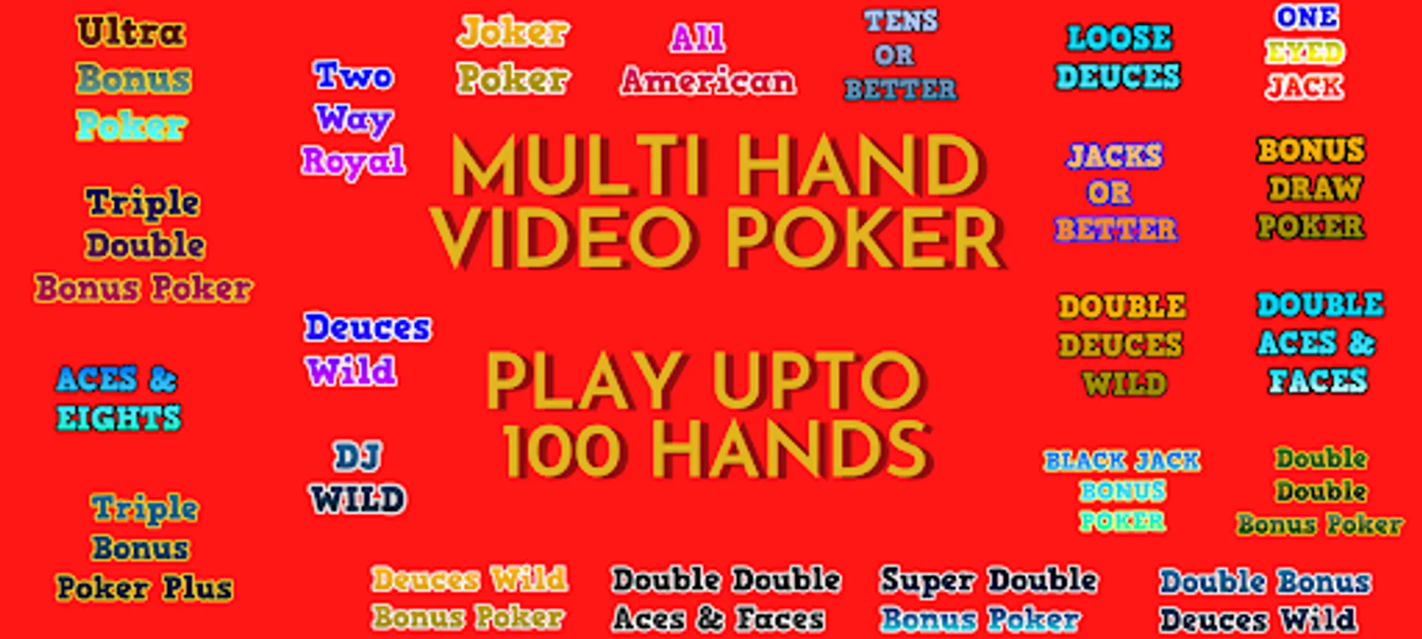 Video Poker - Multi hand game features all the video poker games you can experience in Las Vegas.