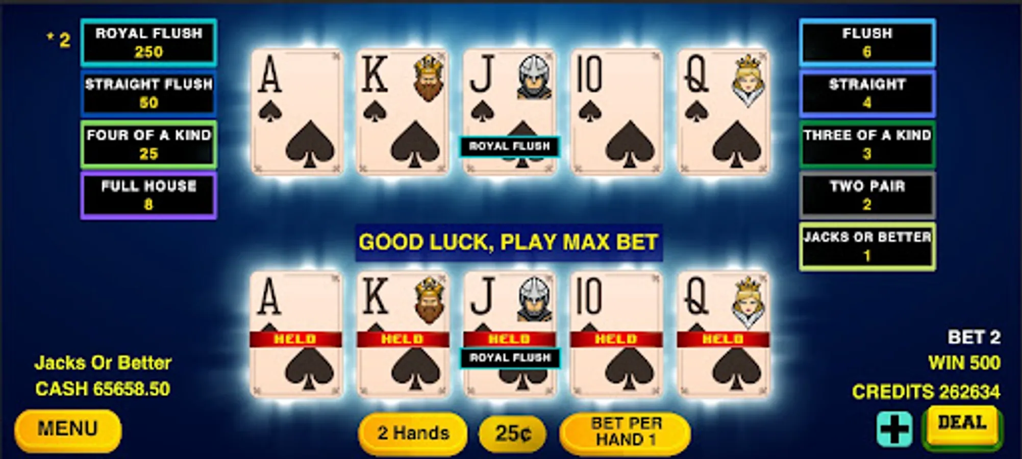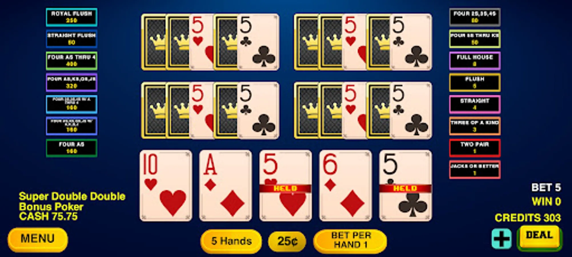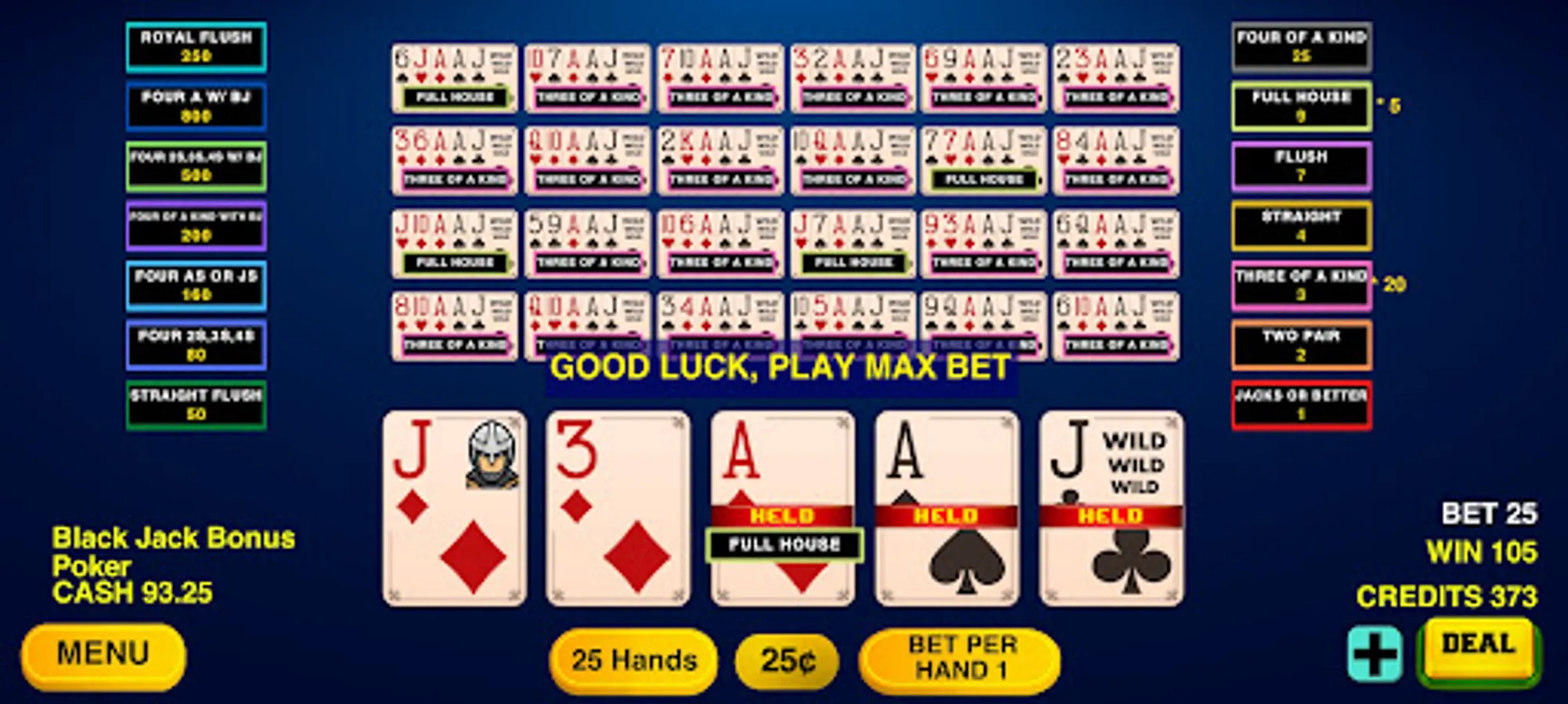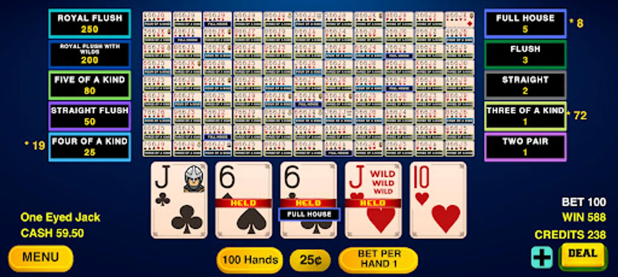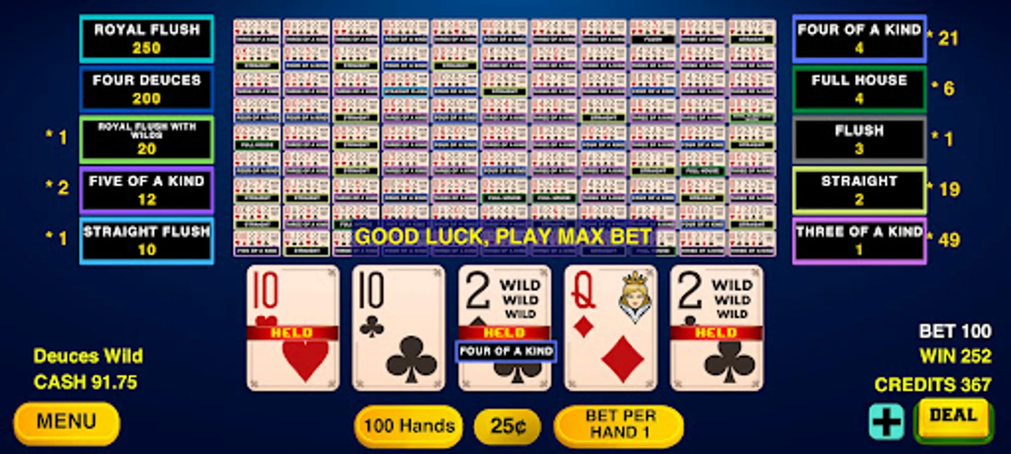 Video Poker Classic game with 100 hands is here.