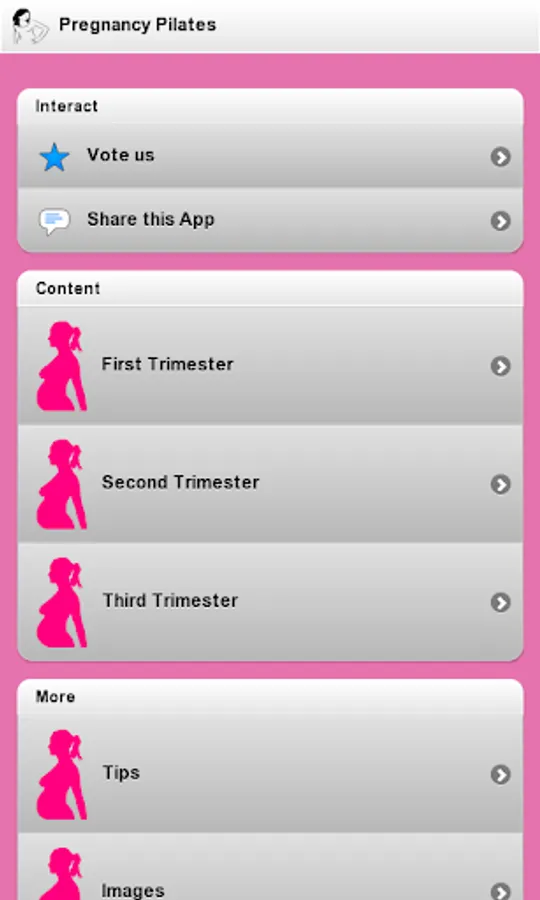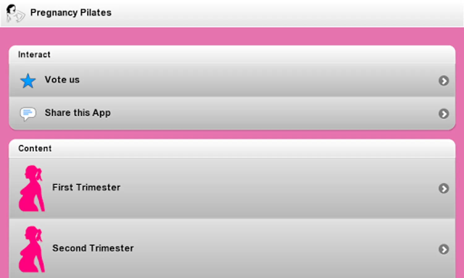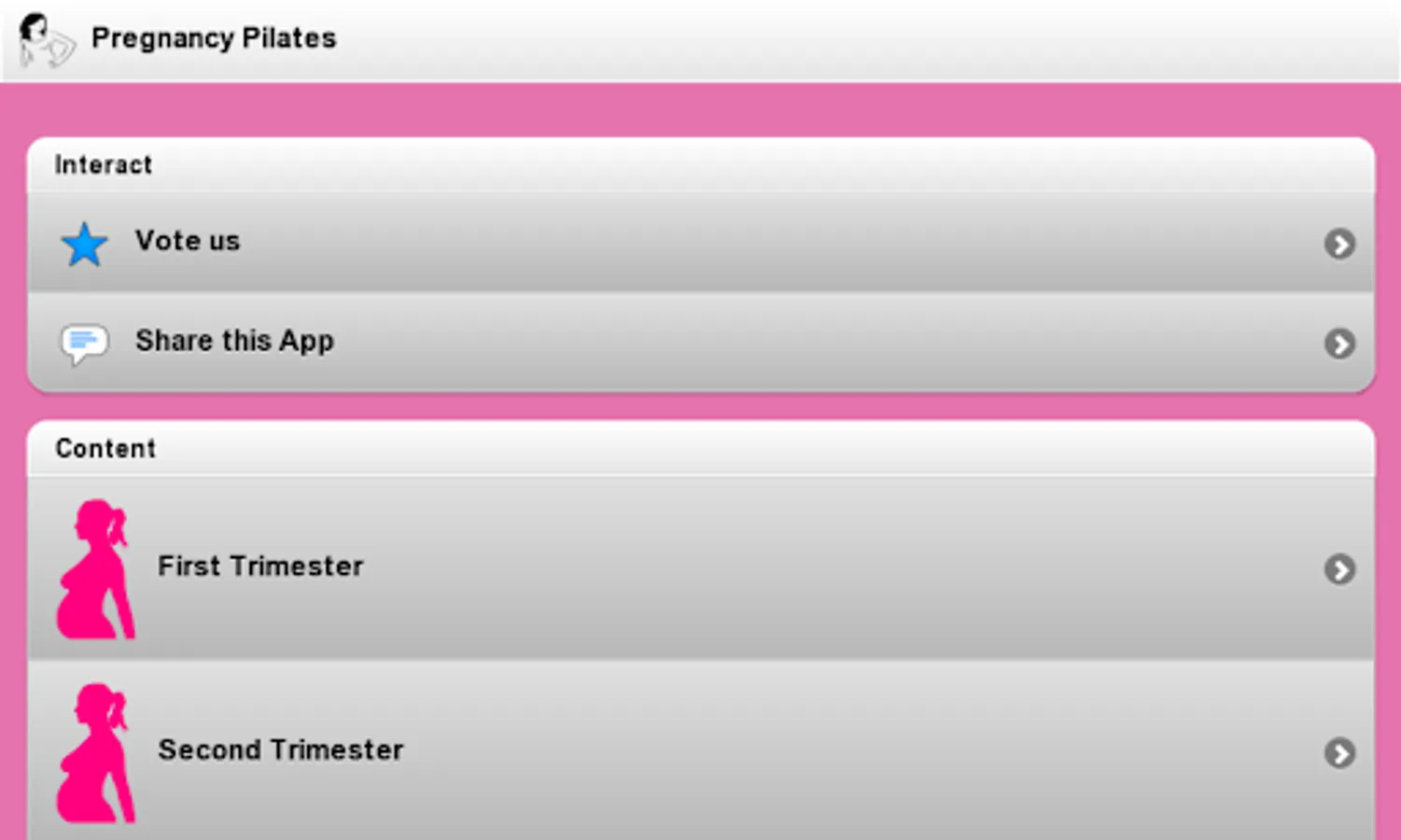 Pilates exercises for pregnancy. All lessons contained in this app are for pregnant women, classified by trimester.