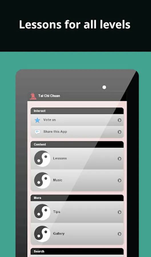 If you want to practice Tai Chi, this is your application. With Tai Chi Chuan app you will learn everything you need to know about this Chinese martial art, its slow, controlled movements and meditation for relaxation, health and self-defense.