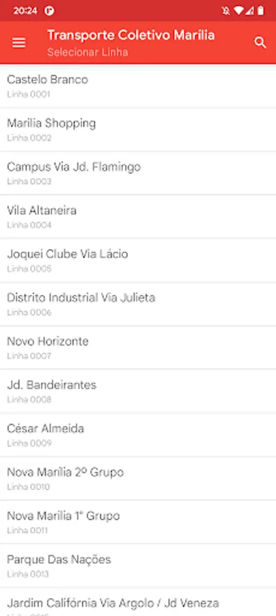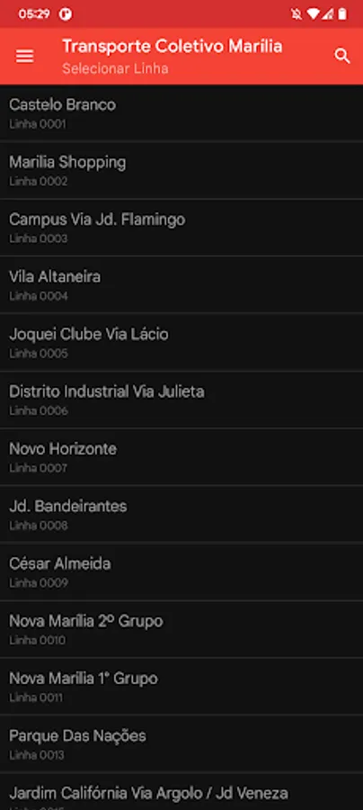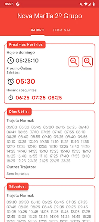 Simple and minimalist application the schedules of all bus lines in the city of Marília