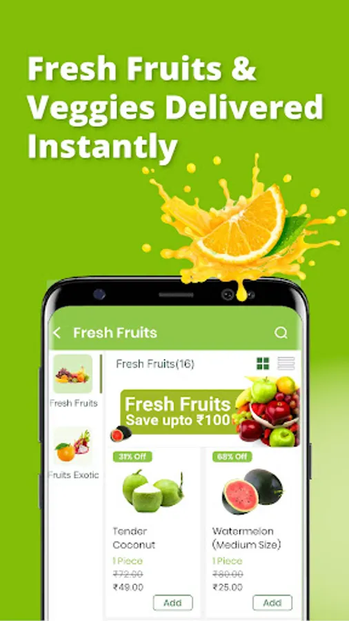Do your grocery shopping online and buy fresh fruits and vegetables. We deliver FRESH, SAFE & HYGIENIC produce . You can get delivery of healthy, fresh - exotic products to Organic groceries, seasonal fruits & Vegetables, & Dry fruits, we have it all. Enjoy easy and smooth app experience.We Delivers to you in Delhi NCR (Gurgaon, Noida & Ghaziabad)
