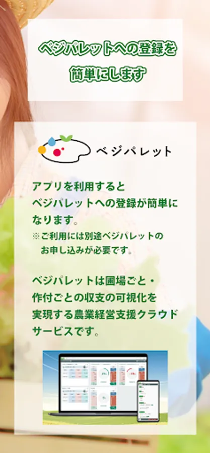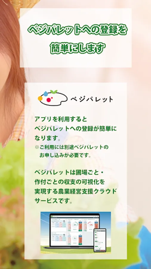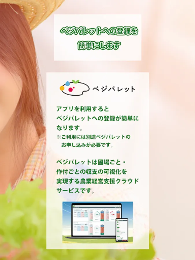 * Note: This application is a dedicated application for the agricultural management support cloud service "Vegi Palette".