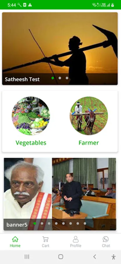 2. Home page contains 2 categories (Vegetables and Farmers)