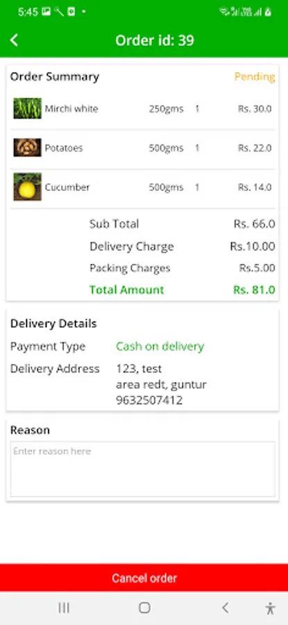 6. Cancel order option available