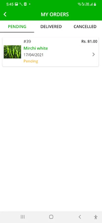 5. MyOrders page shows all kind of orders (pending, delivered & cancelled)