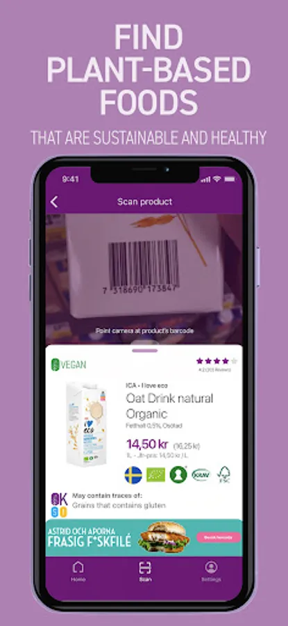 By scanning a product's barcode, information about the product shows directly on your mobile screen.
