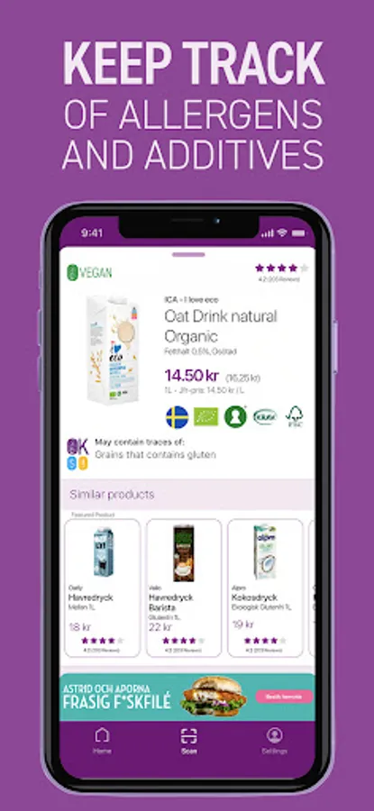You will instantly find out whether the product is plant-based, or if it contains ingredients of animal origin. You also get information about;