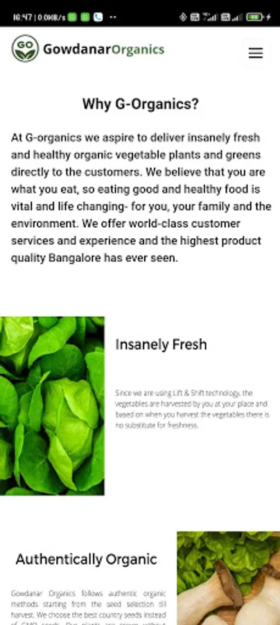 Download Gowdanar Organics, order your desired greens, herbs or mushroom. We ensure you Live and Fresh vegetables are delivered to your doorstep.