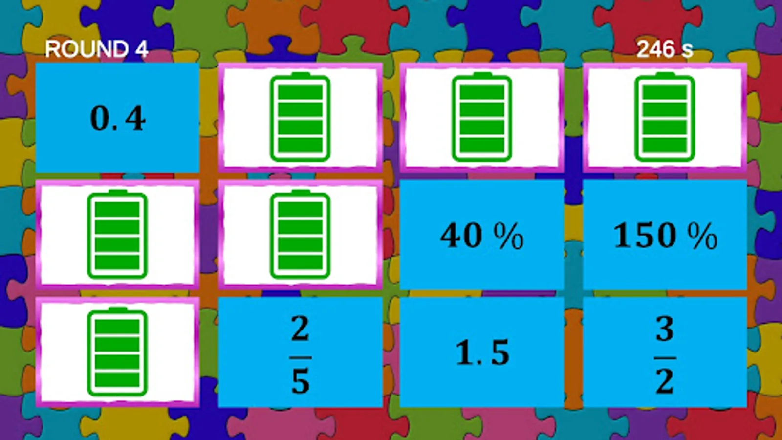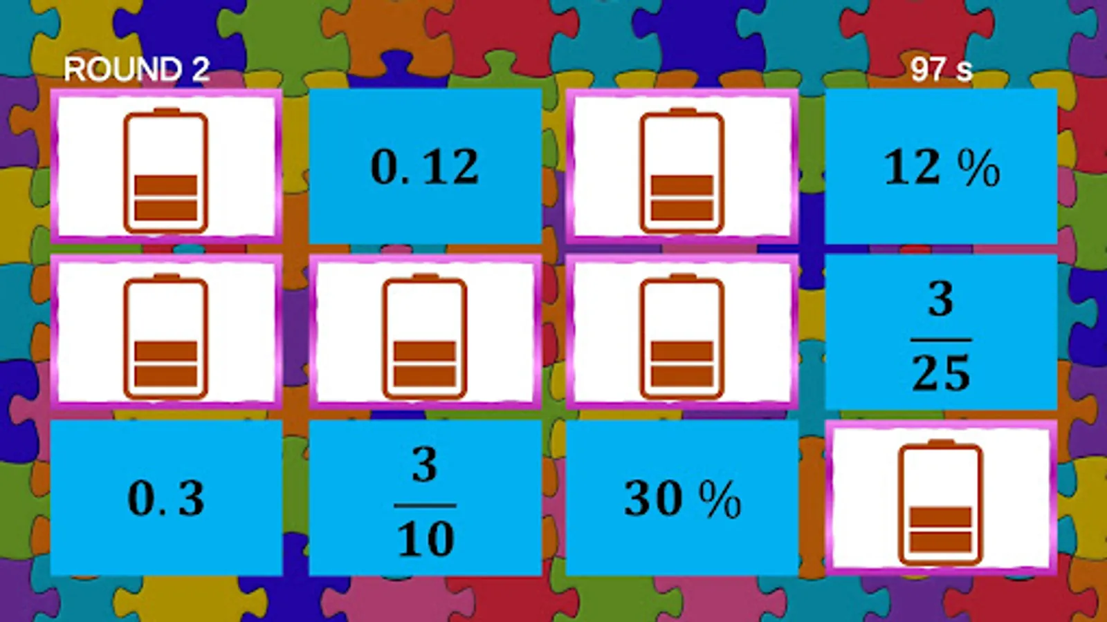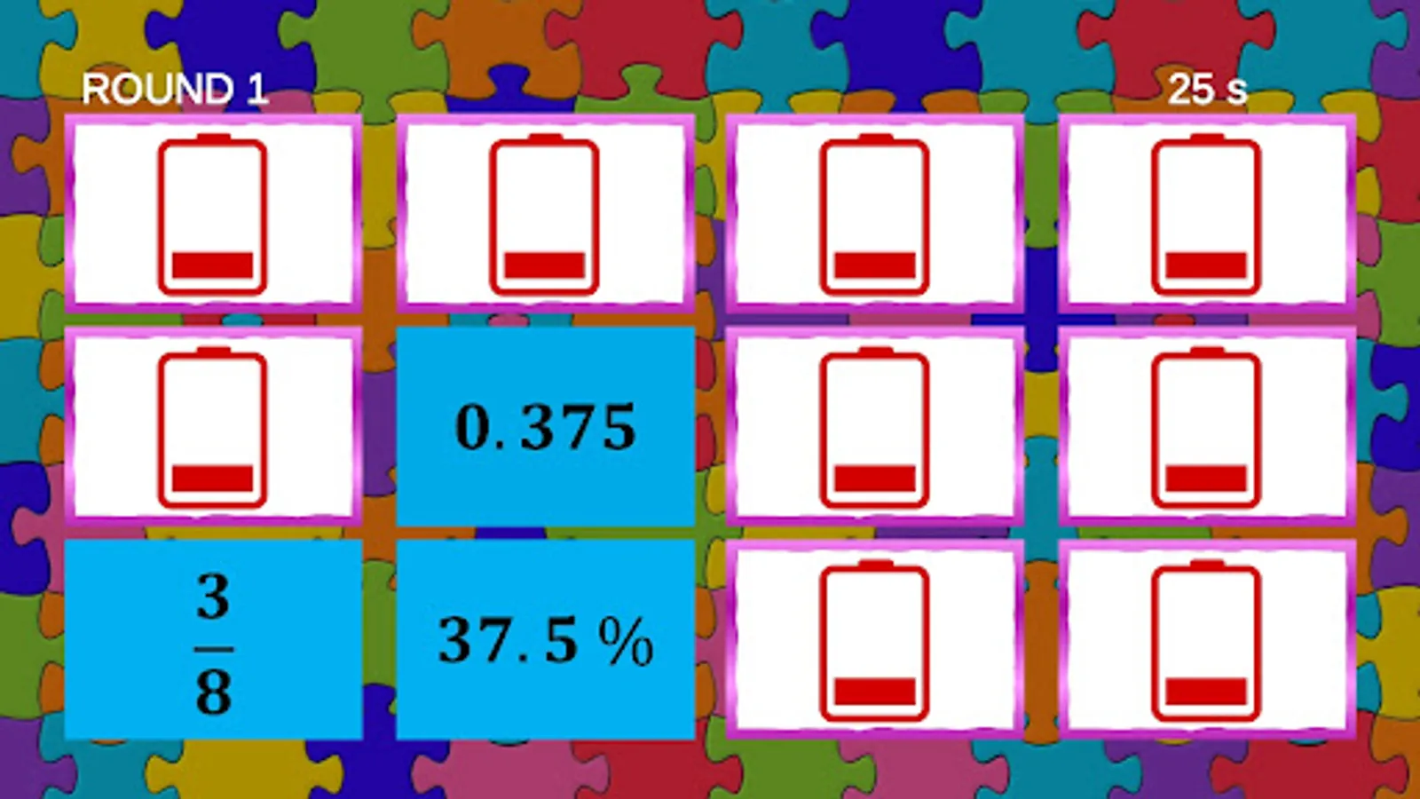 The concept of the game is to find trios that correspond to each other. For example, if you find a fraction like 1/4, you must look for the associated decimal (0.25) and percentage (25%). This helps you grasp how the same value can be expressed differently.