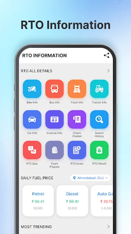 With RTO app you get daily updates of Petrol and Diesel prices.