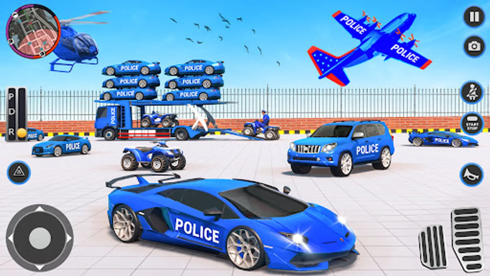 Start your career with police car transporter games, US police truck games provide you with new models of cop cars, Police bikes, transport cargo airplanes, and 4x4, where you enjoy the real police transport truck driving games. This US police ATV quad bike game is an open world game. Your main task is to deliver cars in the police transporter game 3D, providing you with career car driving games. The police truck games have a different process for transporting police cars. This game introduces free police truck games for all ages, especially those who like US 4x4 police car truck driving games. Enjoy the music when Cops SUV is driving a cargo truck, quad bike, ATV quad, US police bike, police airplane, Army vehicle, cargo transporter, and other transportation vehicles.