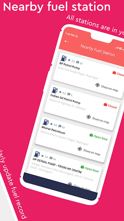 You can also find nearby petrol pump, gas stations, diesel pump in Vehicle 24x7 app.