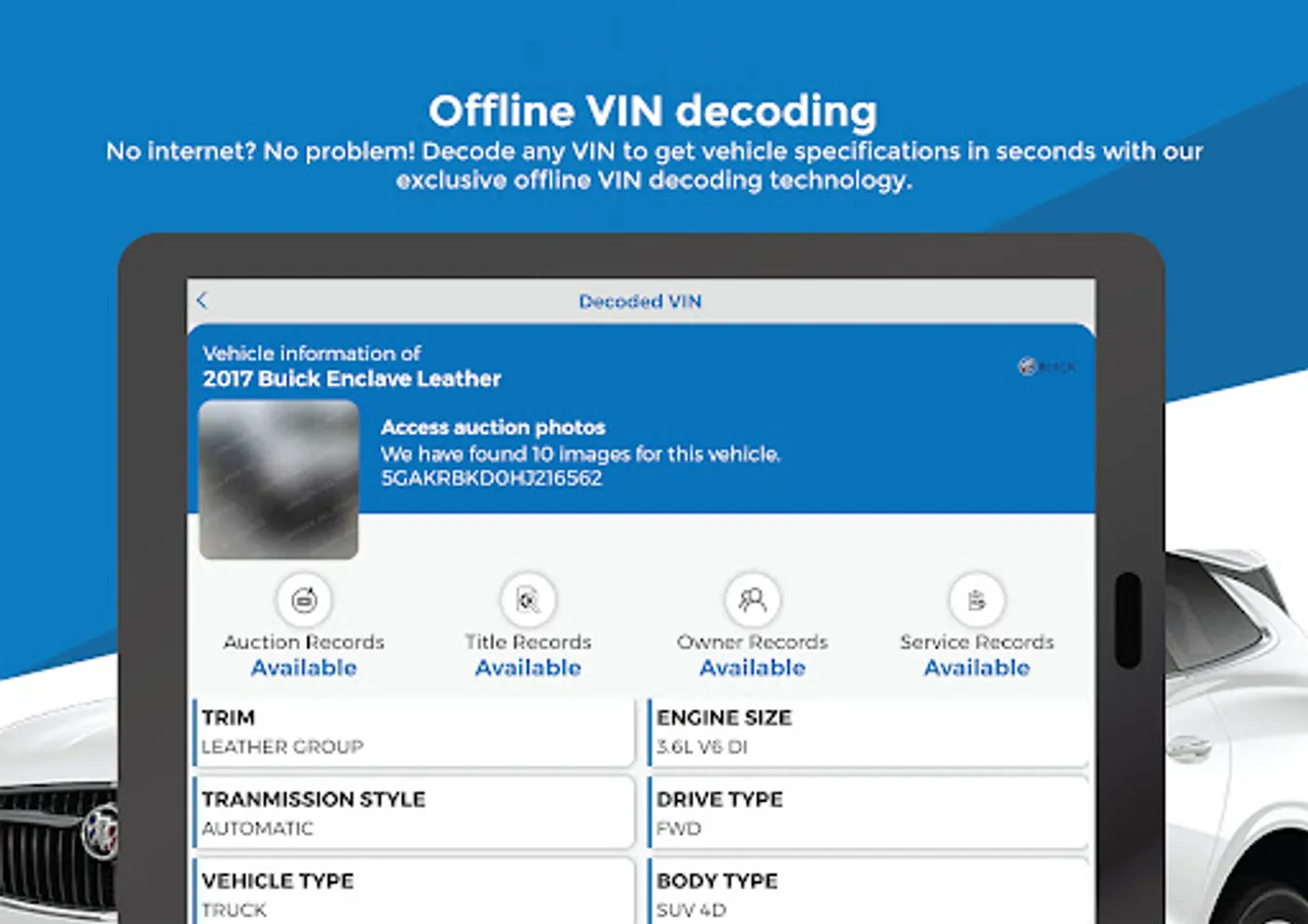 • Decode VIN without internet