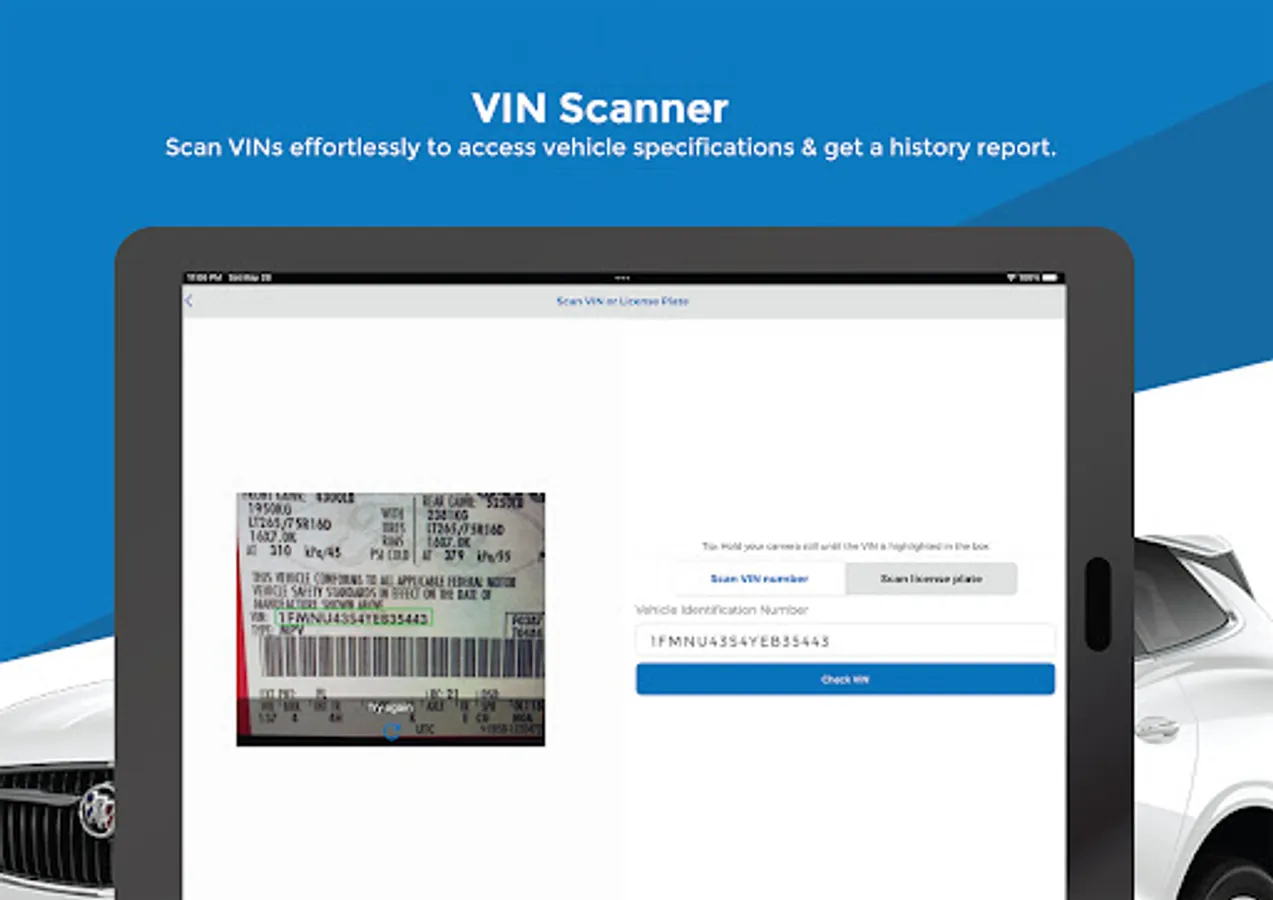 • Scan VINs or License Plates