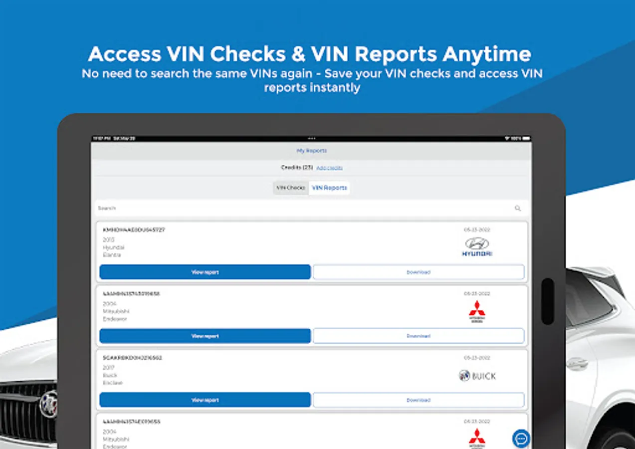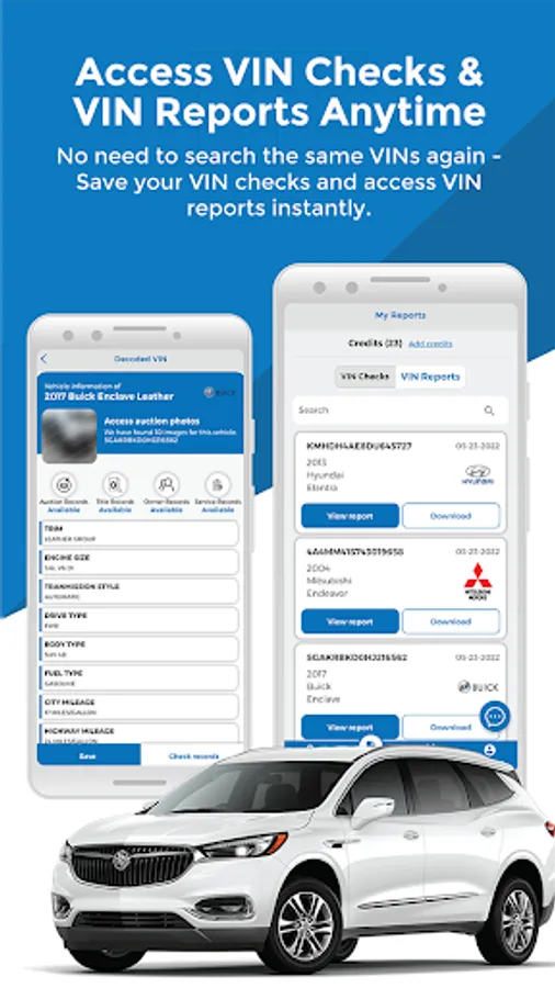 Click “Check VIN” to view the information decoded and vehicle specs - access the VIN report from “My Reports” tab.