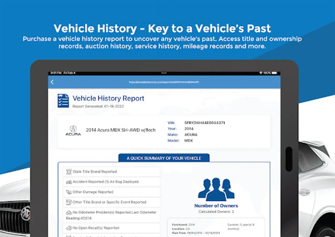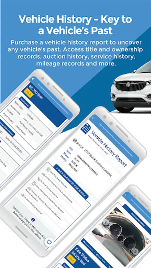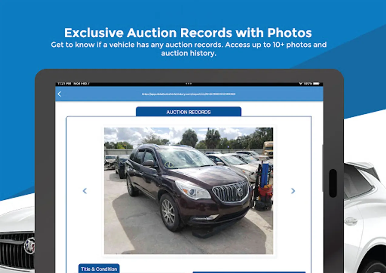 • Access Vehicle history report with title and historical data