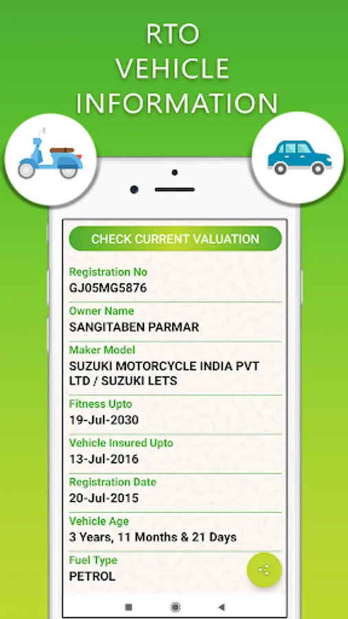 Track Vehicle Current valuation, Owner name ,Registration Name and other Details.