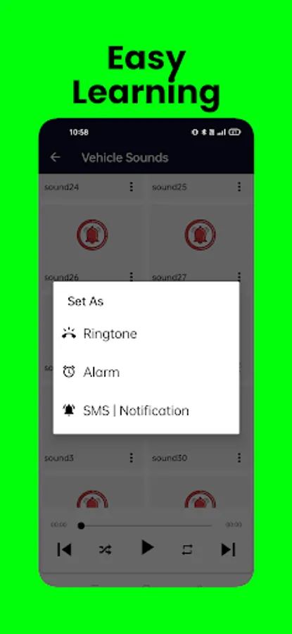 The vehicle sounds contain extra added features like kids can download or set ringtone for any Android device.