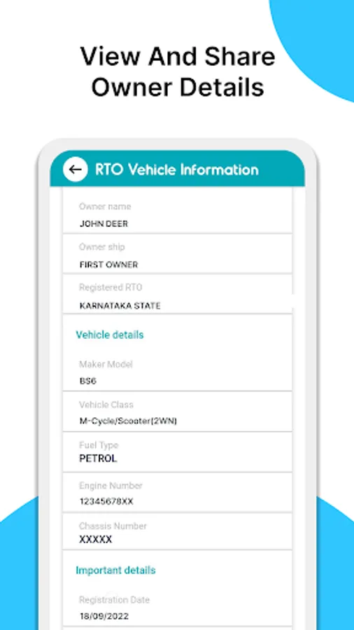 Disclaimer: We do not have any association with any state RTO. All vehicle information about vehicle owners shown in the app are publicly available on the Parivahan website (https://parivahan.gov.in/parivahan/). We are only acting as an intermediary to make this information easily available to the users through the mobile app.