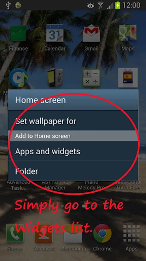 3. Select Widgets tab from the Apps/Widgets pop-up and list view.