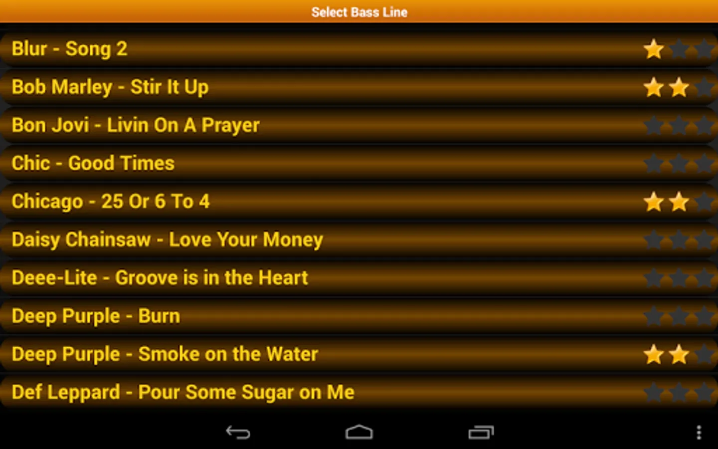 Songs cover all genres: Rock, Indie, 60s, 70s, 80s, 90s, Naughties, Modern, Latin, Classical, Film Themes, TV Themes, Traditional. The pro version has ever expanding catalog of bass lines which include: