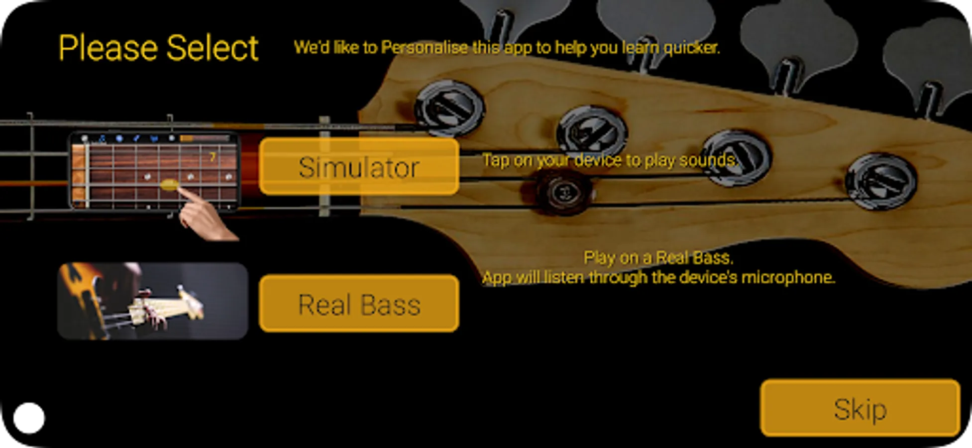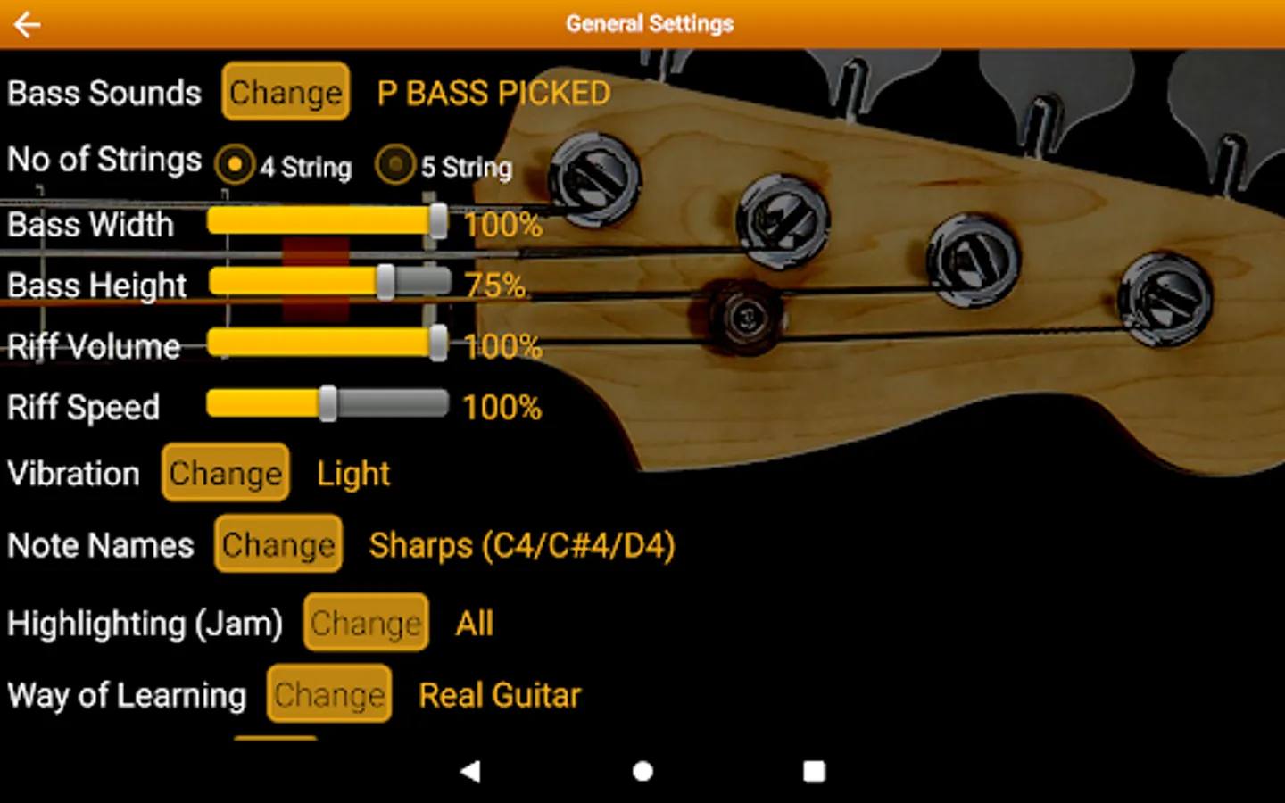 • Highly configurable. Resizable fretboard suitable for all devices and tablets. There's an essential range of guitars to choose from: Precision bass picked, jazz bass fingered, slap bass with all 4 or 5 strings.