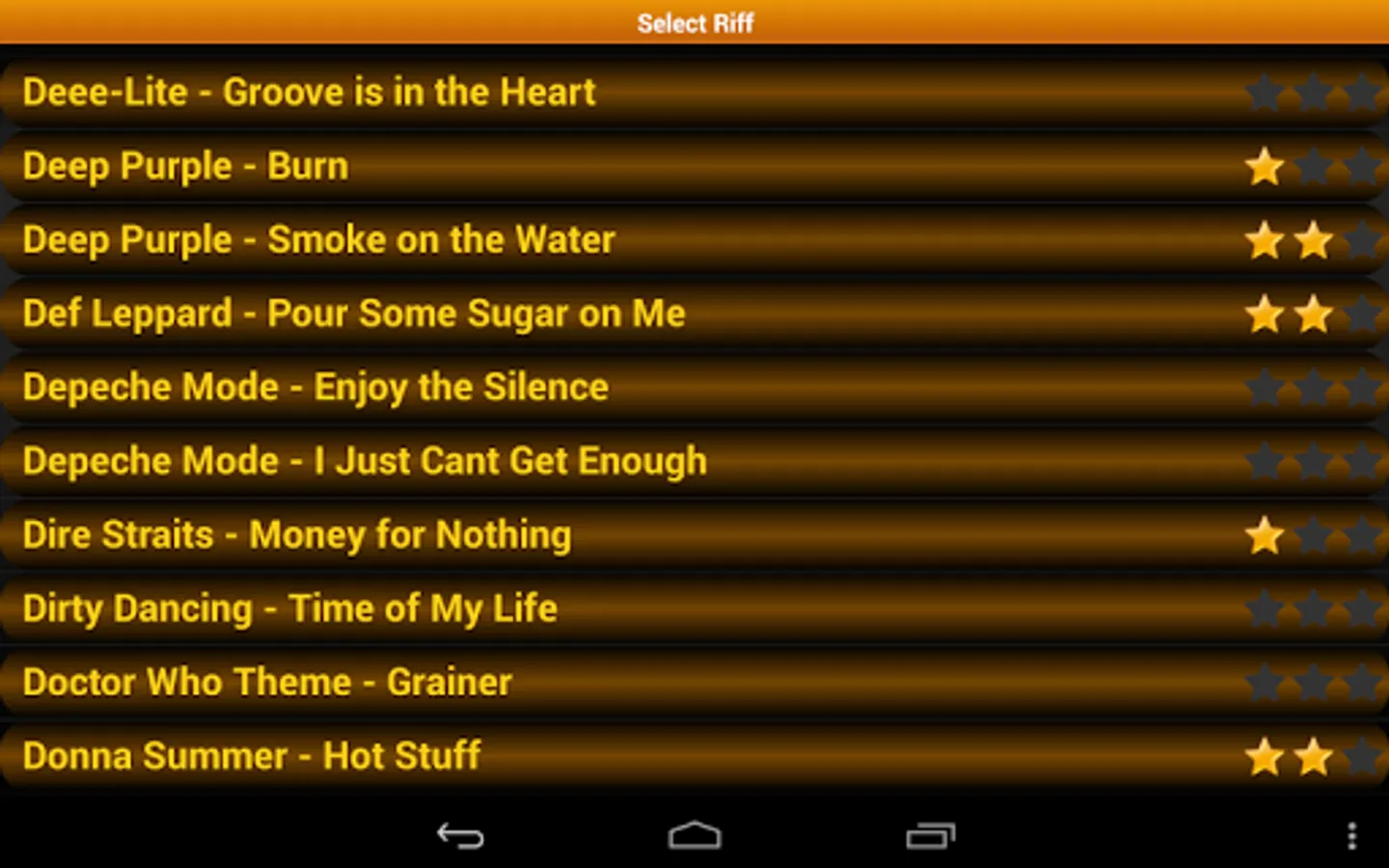 Songs cover all genres and all the best bands: Rock, Indie, 60s, 70s, 80s, 90s, Naughties, Modern, Latin, Classical, Film Themes, TV Themes, Pop, Traditional. Impressive your friends with your repertoire by learning the most famous riffs such as ACDC, Alice Cooper, Arctic Monkeys, Beatles, Cream, Deep Purple, etc.