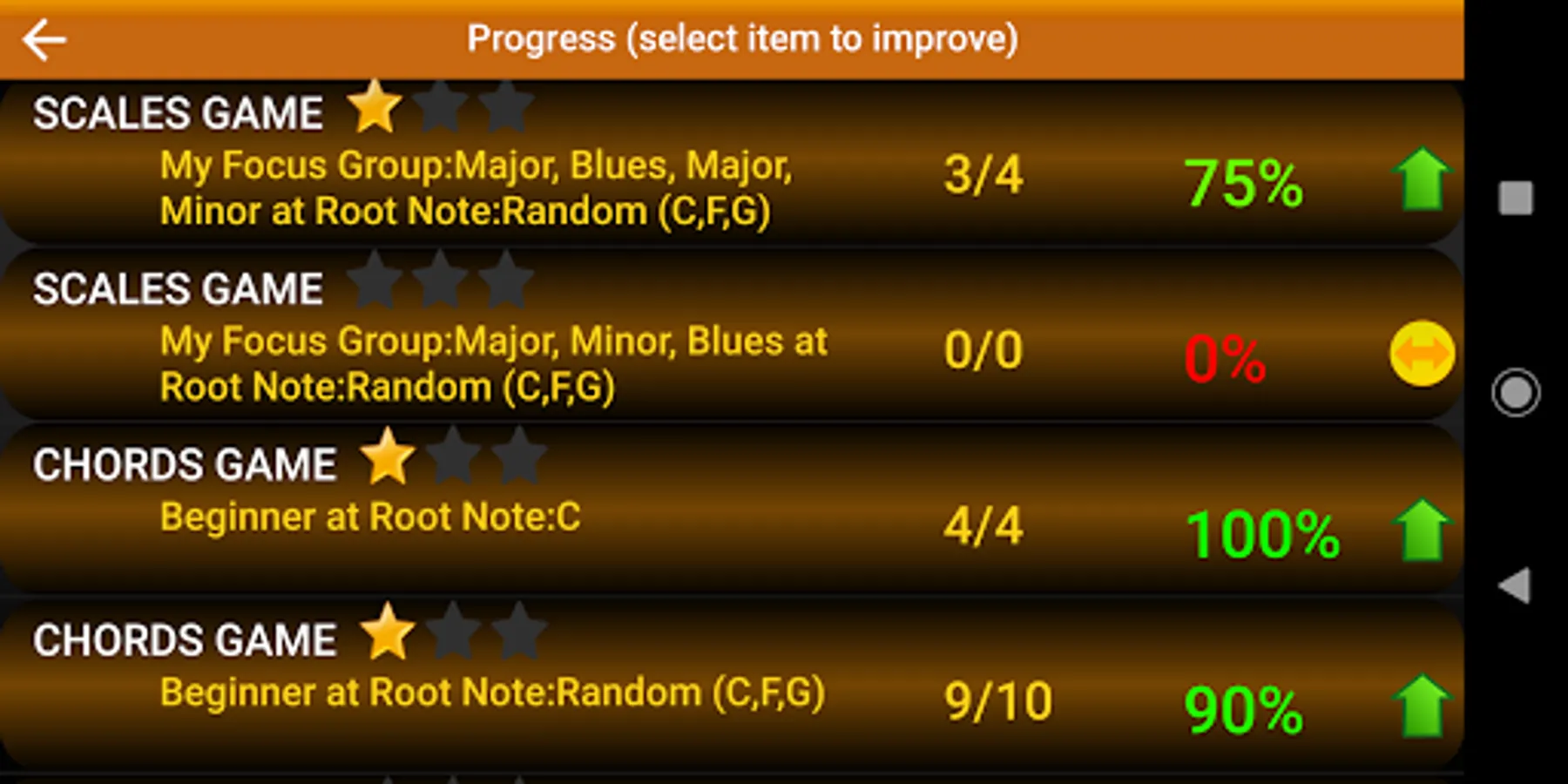 Advance quickly by creating your own level by specifying which scales and chords to focus on.