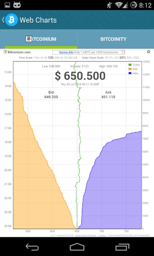 ☆ Charts from multiple sources and current orderbook view-able within the application