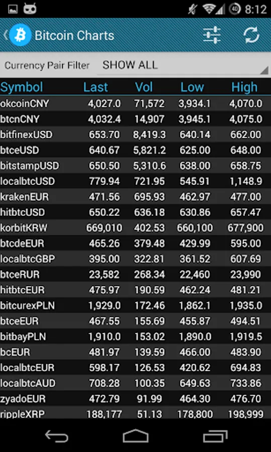 ☆ Bitcoin Charts ticker list available for unsupported exchanges